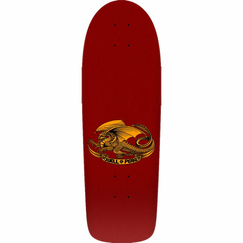 Initially released in two distinctly different shapes; a 10″ x 30″ “Widetail” version and a 10″ x 28.5″ “Snub Nose,” it came in “Brite-Lite” Dayglo yellow, orange, purple and green. In years to follow, it was made in various different colors and a Powell-Peralta logo was added. In 1983 Ray’s signature was removed and replaced with a Powell-Peralta script logo. The graphic was also used for T-shirts and stickers.
